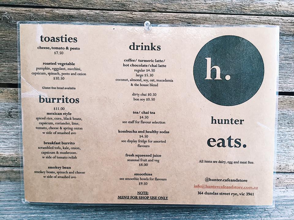 Hunter Menu Menu For Hunter Rye Mornington Peninsula